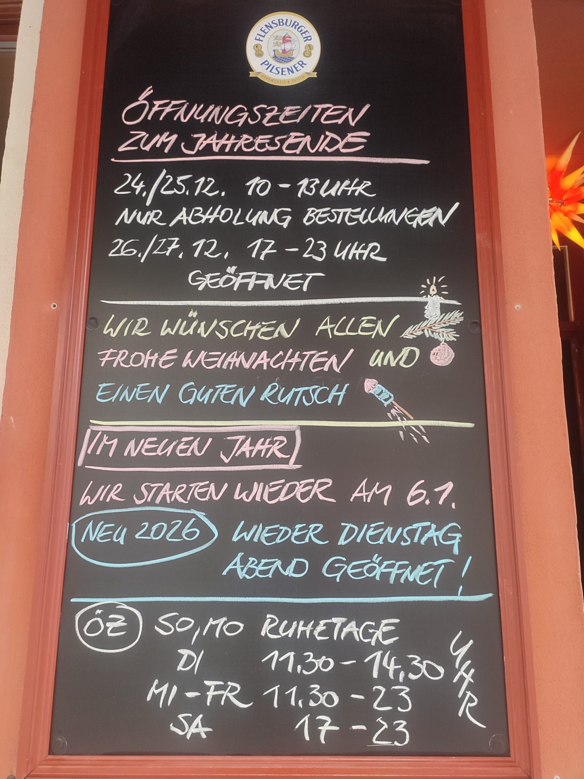17 Uhr bis 23 Uhr (Küchenschluß 21 Uhr)
