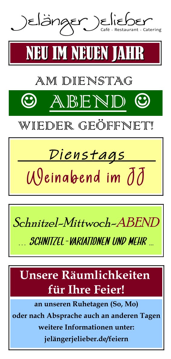 Sonntag und Montag geschlossen