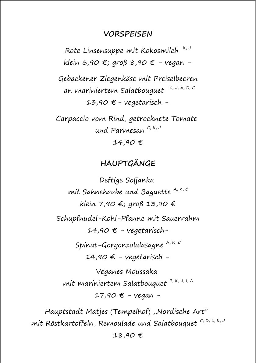 Deshalb bieten wir Ihnen eine kleine feine Speisekarte an, in der für jeden etwas dabei sein müsste.
